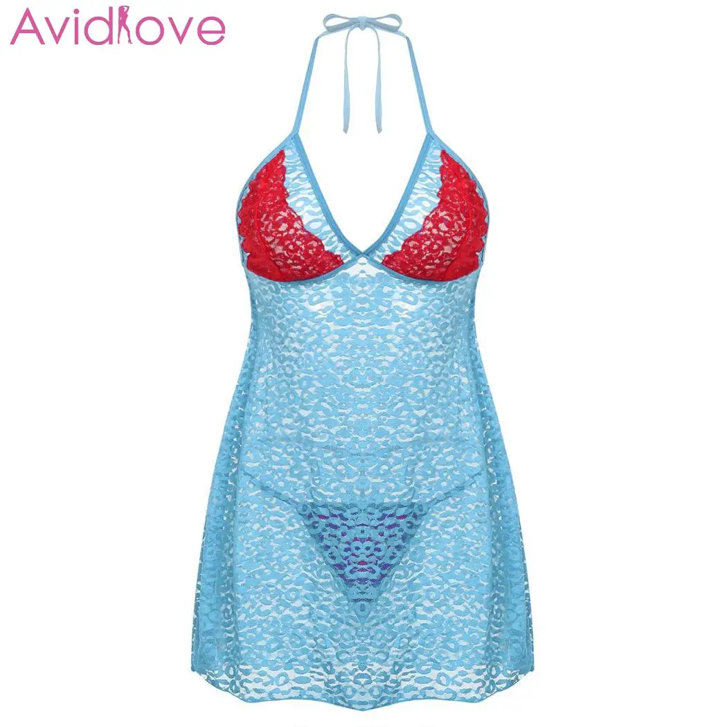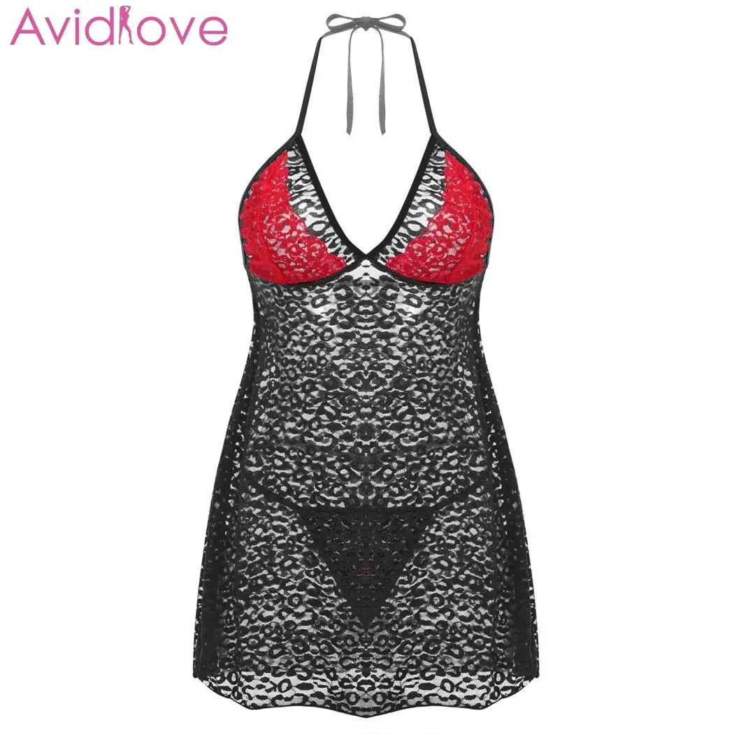 Limited Chance for Avidlove V neck Sleepwear Women Sexy Lingerie Hot Erotic Halter Backless Lace Babydoll + G-String 2
